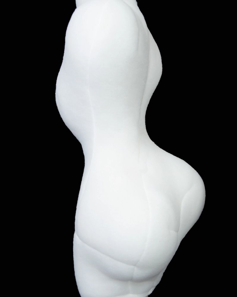 A designer’s female dummies are called Judy (males are called James). These come in different sizes and proportions, their silhouettes changing with the times — with the trends of idealized bodies. Is the dummy a canvas or a narrator? I wonder if, in this design, Kawakubo is writing auto-fiction, externalizing the experience of herself as a designer with her Judys.