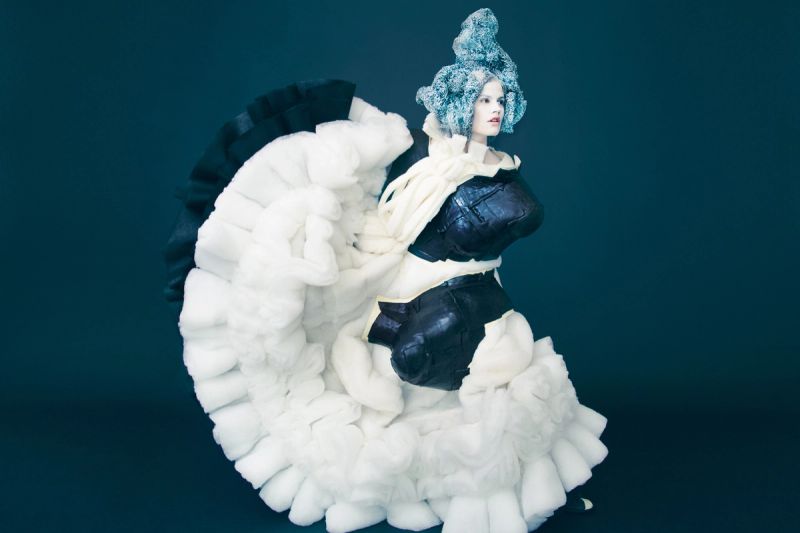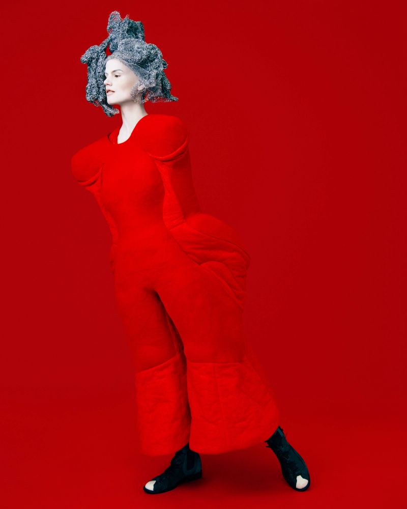 On a recent spring day, Erik Madigan Heck photographed six pieces from Kawakubo’s fall 2017 collection — called “Future of Silhouette” — on the Dutch model Saskia de Brauw. The clothes are made from raw material that Kawakubo calls “nonfabrics”: what appeared to be cauterized rubber, rug pads, cotton batting, stuffing and duct tape. The hairstylist and artist Julien d’Ys’s headpieces, which also appeared in the runway show, were made of pot scrubbers from a Paris supermarket.