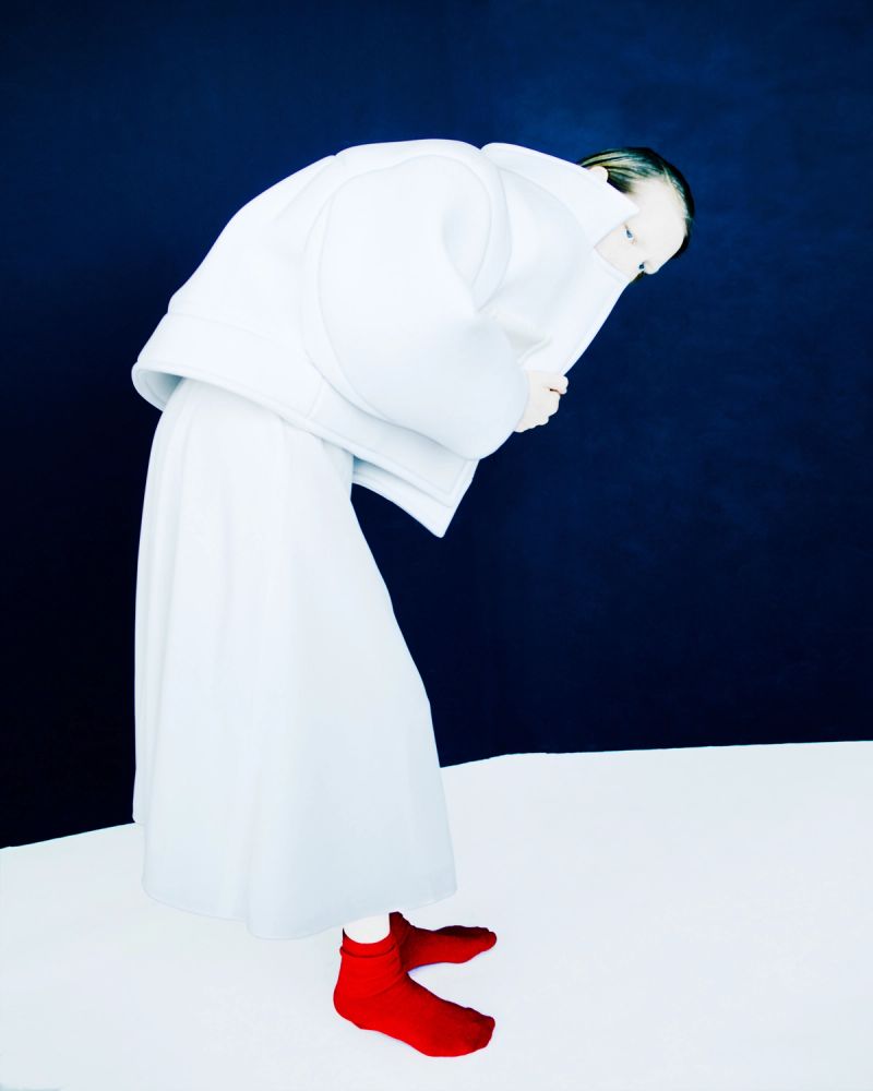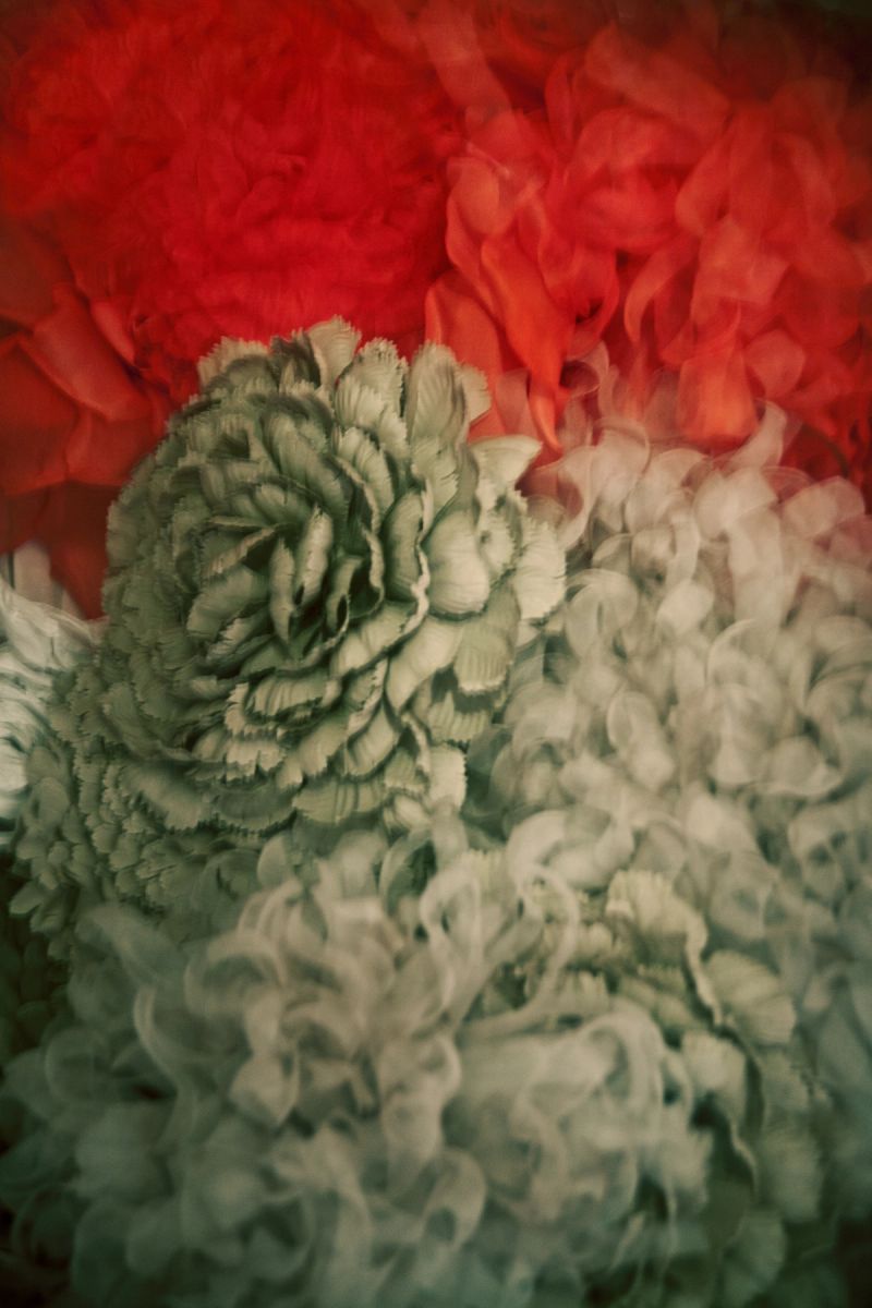 That end, here as in all of Heck’s work, is primarily colour, and the series’ selection and pagination emphasize that priority above all. Its secondary order, from nature- to studio-based imagery, thematically represents the movement of photography away from faithful representation and toward purposeful making. As the series progresses, its arrangements increasingly disguise and alienate the human figure in favor of painstakingly constructed abstract compositions, and reduce the natural forms of plants and animals to patterns of shape and colour.