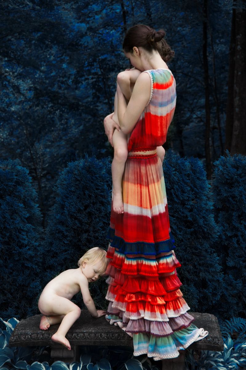 The series moves through a singular world—a fairytale in which figures and settings become tableaux for hyper-concentrated tonal arrangements. Images are composited and oversaturated with colour to create painterly and surreal compositions in which the familiar and fantastic are merged. Completing its aesthetic fantasy through lavish clothes, gestures of dreamlike poignancy, and an Edenic environment, ‘The Garden’ expresses the supramundane innocence and spontaneity that art makes possible—a life lived in the direct, immediate experience of beauty.