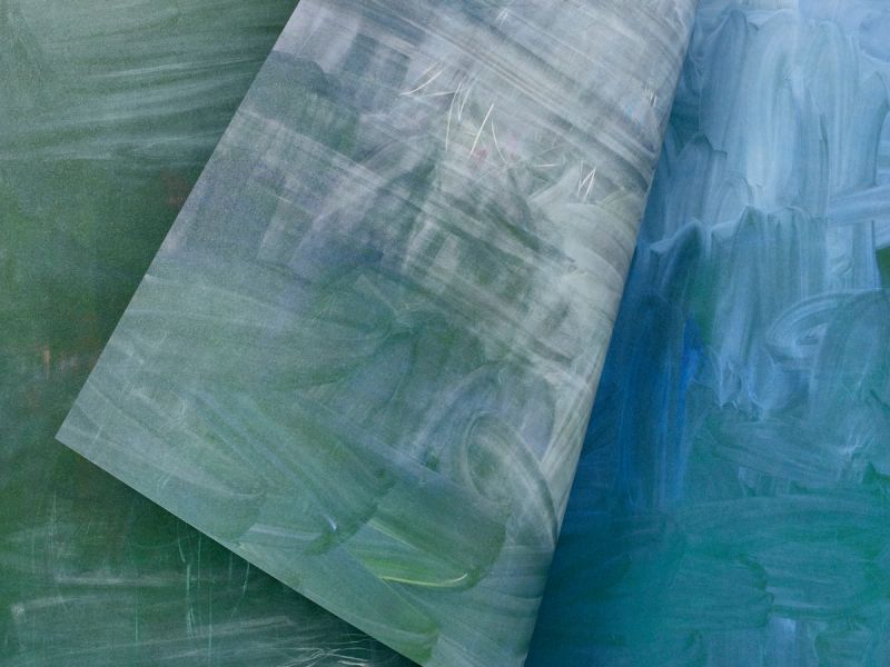 APFEL worked closely with Heck to sequence the artworks, creating conversations between the contributors on 15 paper stocks – from matte coated, high gloss, and uncoated papers. Coloured paper-dividers are used throughout, utilising the colour theme of each section with corresponding quotations printed on semi-transparent tip-in pages. Other details include a double gatefold and a cut-short section that is designed as a letter-like intervention.